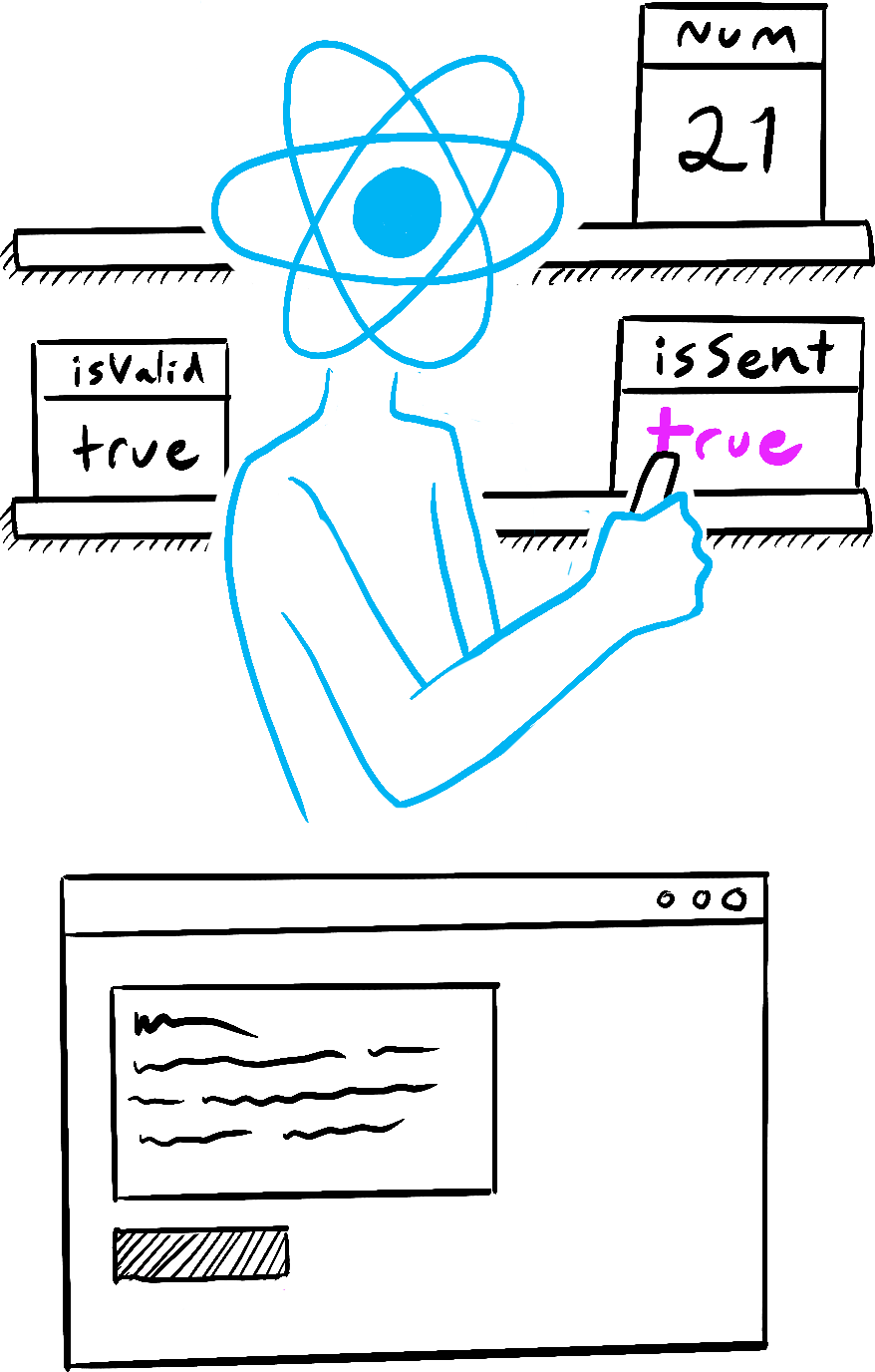 import { useState } from 'react'; export default function Form() { const [isSent, setIsSent] = useState(false); const [message, setMessage] = useState('Ćao!'); if (isSent) { return <h1>Vaša poruka je na putu!</h1> } return ( <form onSubmit={(e) => { e.preventDefault(); setIsSent(true); sendMessage(message); }}> <textarea placeholder="Poruka" value={message} onChange={e => setMessage(e.target.value)} /> <button type="submit">Pošalji</button> </form> ); } function sendMessage(message) { // ... }